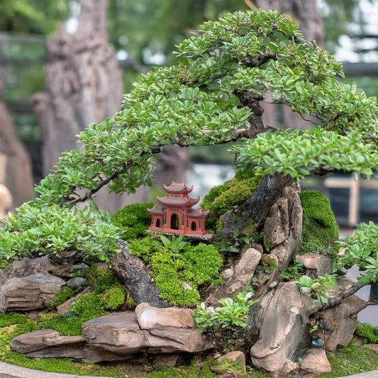 From bonsai pagoda decor to small pavilions and temple gates, these pieces create a serene, traditional feel. Imagine a Japanese pagoda rising beside your upright bonsai, adding cultural depth and balance.