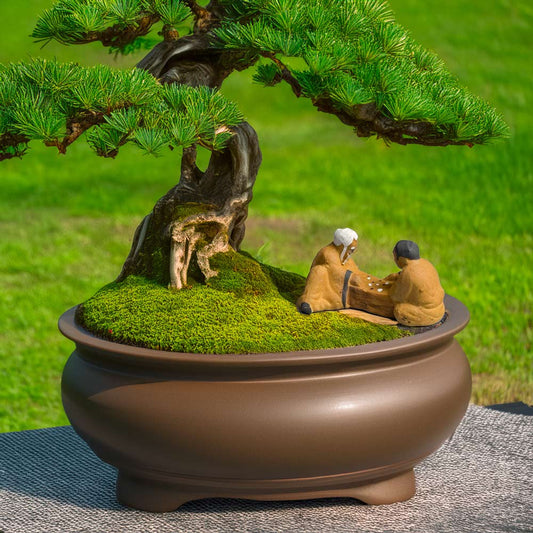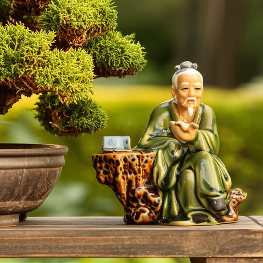 Our bonsai mudmen figurines include scholars, fishermen, and gardeners. These figures bring life and narrative to your bonsai — a fisherman under a cascading tree, a scholar thinking under a pine.