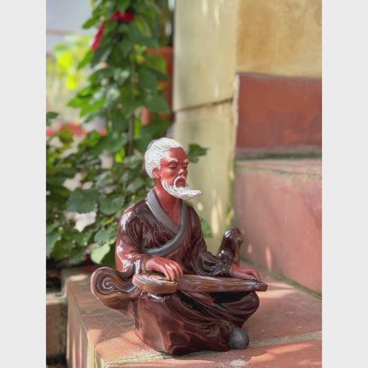 Musician Sage Figurine | Handcrafted Vietnamese Ceramic Bonsai Decor