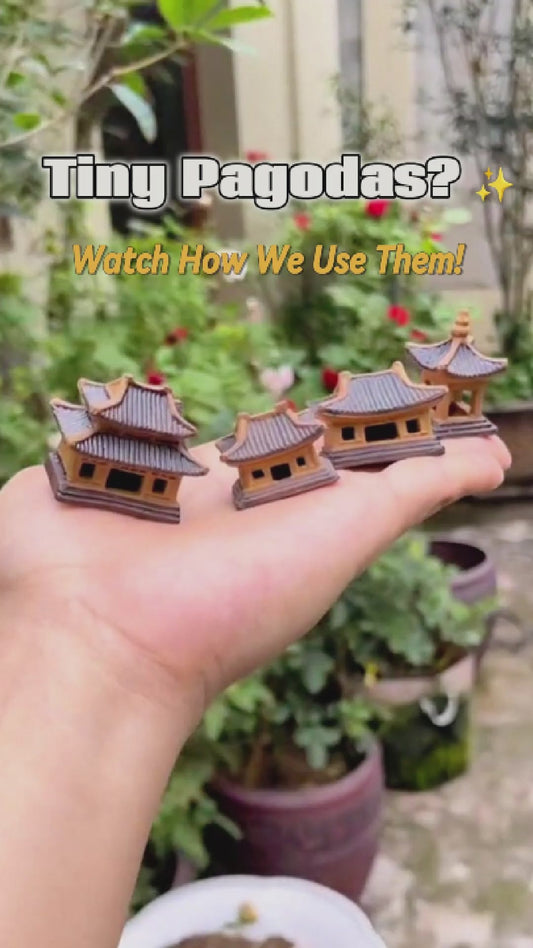 Miniature Japanese Pagodas | Ceramic Bonsai Figurines & Zen Garden Decor