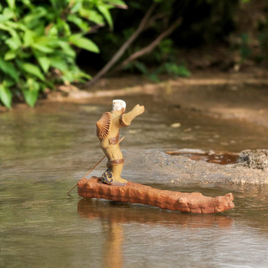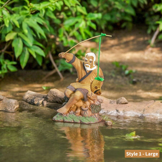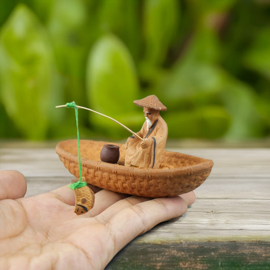 These figurines capture the serenity of a fisherman at work, often depicted sitting on a small boat with a fishing rod in hand. Their peaceful imagery makes them a popular choice for bonsai and aquarium decor, creating a sense of tranquility and harmony.