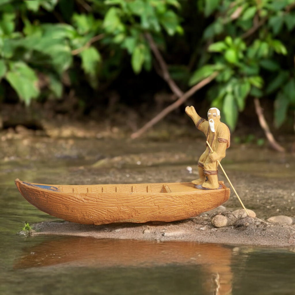 - Für Bonsai-Ausstellungen: Platzieren Sie diese Fischerfigur auf einem kleinen Stein in Ihrem Bonsai-Topf, um eine „schwimmende“ Flussszene zu gestalten und ein beruhigendes, erzählendes Element hinzuzufügen, das die natürliche Schönheit Ihres Baumes unterstreicht.